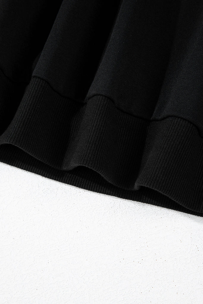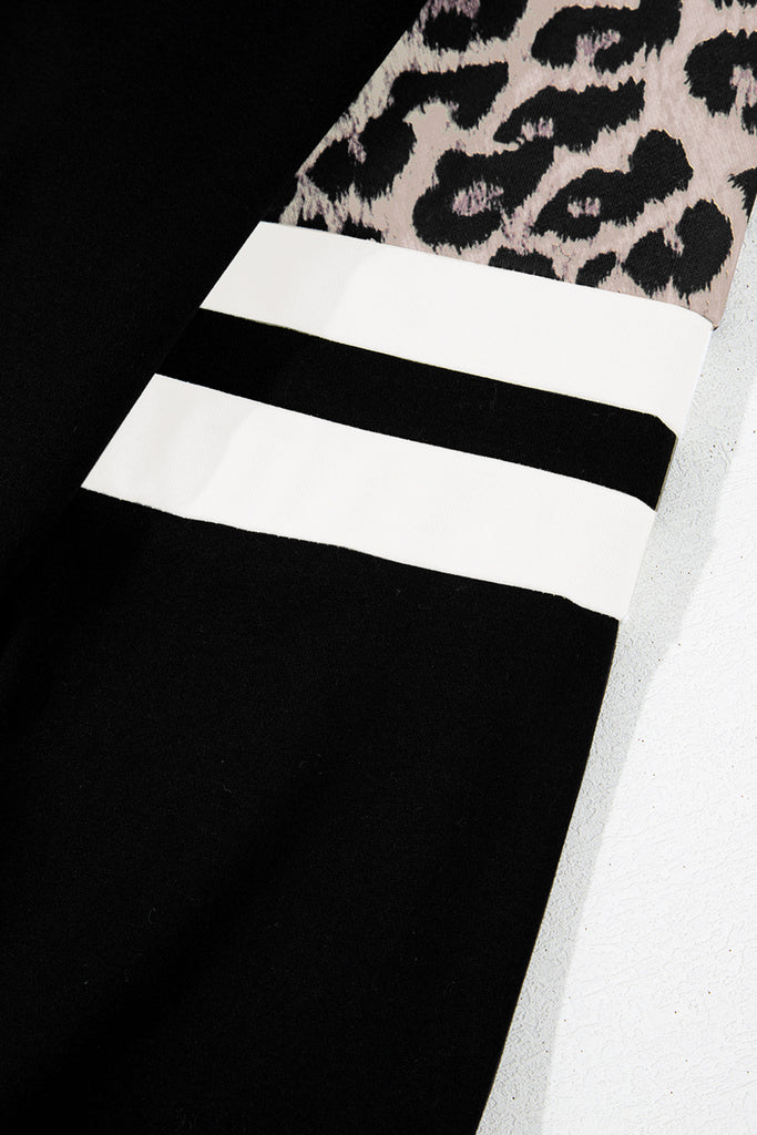 Black Leopard Print Colorblock Raglan Sleeve Sweatshirt