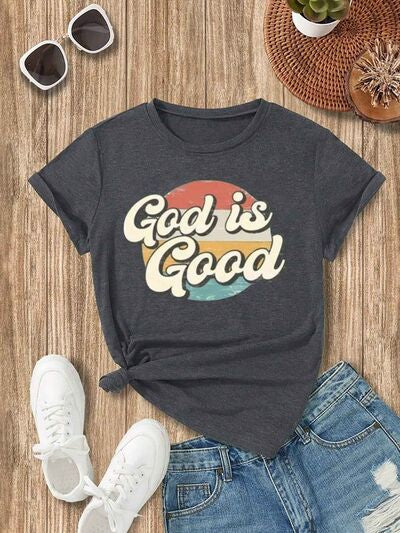 Full Size GOD IS GOOD Round Neck Short Sleeve T-Shirt