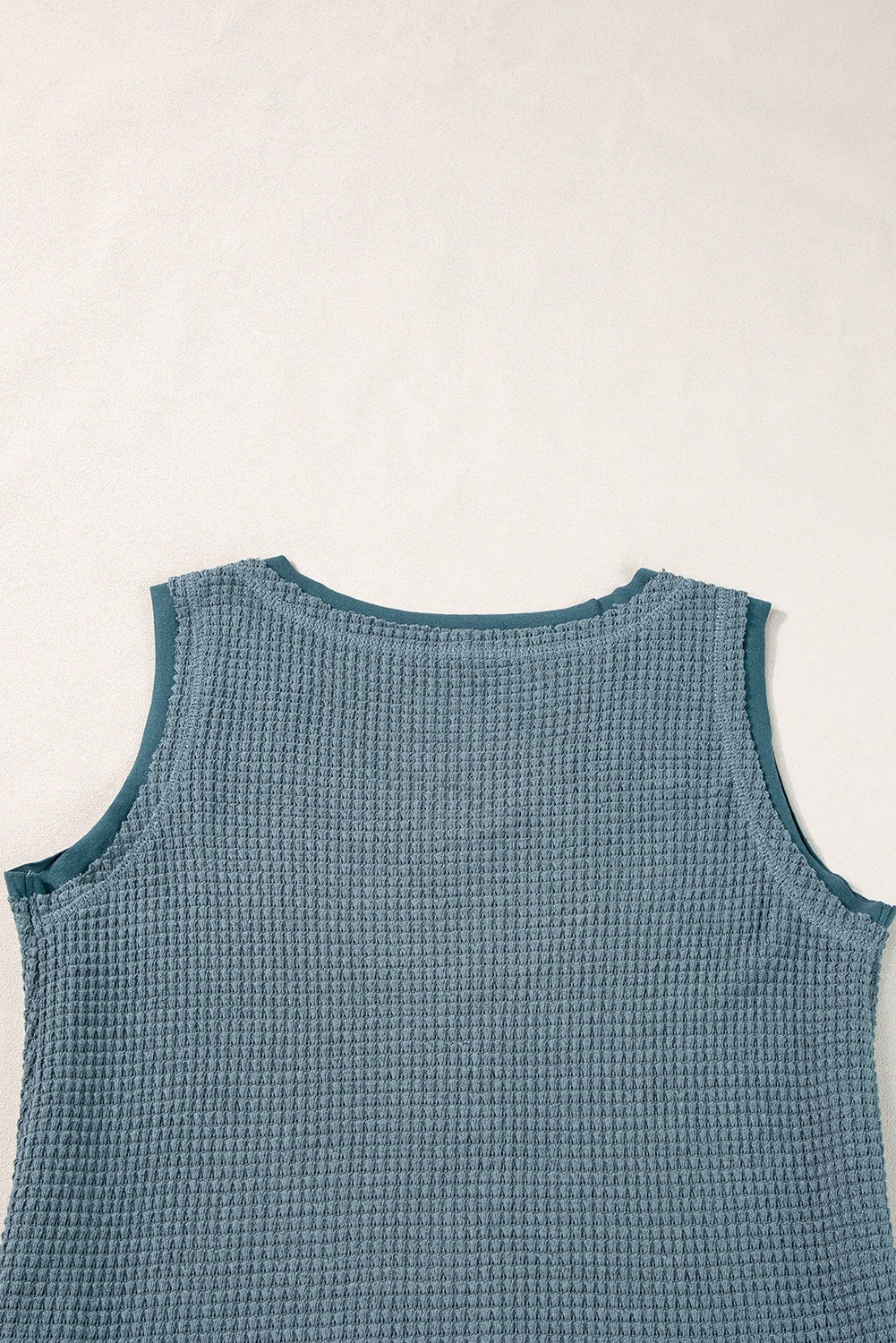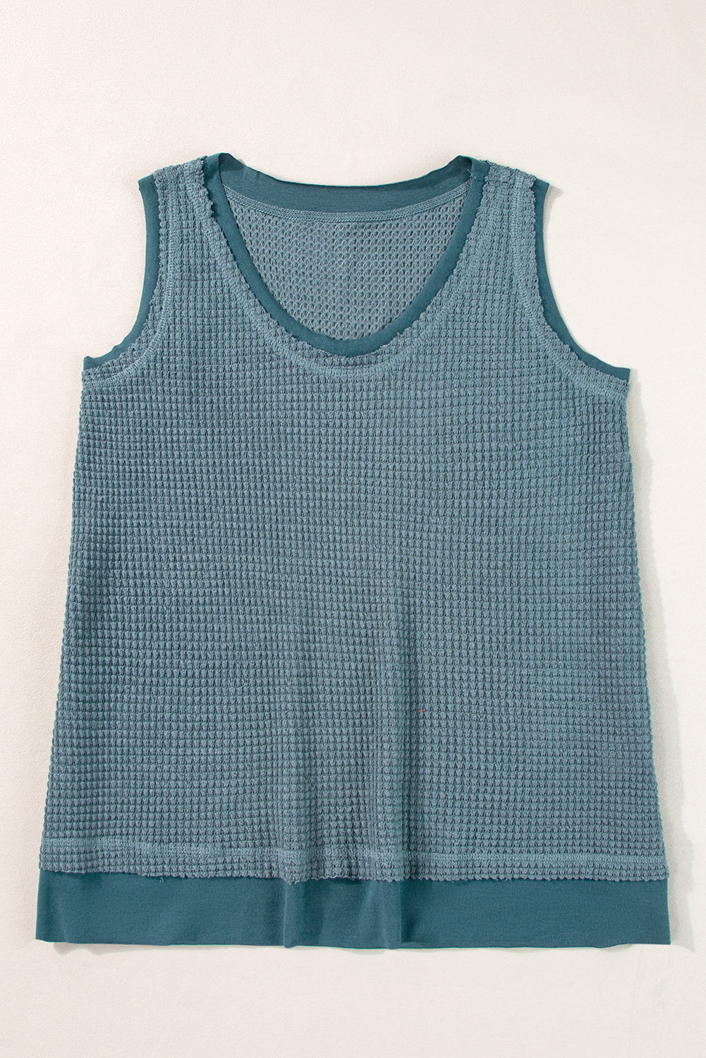 Real Teal Scoop Neck Waffle Knit Flowy Vest