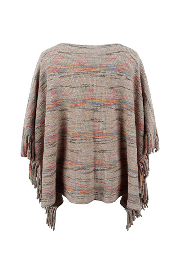 Round Neck Fringe Detail Sleeve Poncho